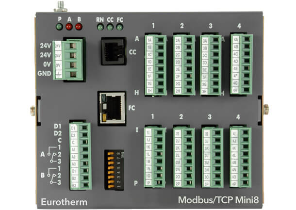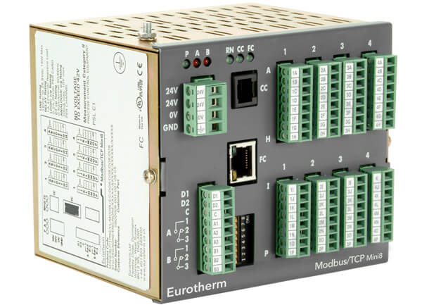 The Mini8 Loop Controller offers high performance control usually only found in Eurotherm panel mount PID controllers. It is also a very competitive and compact data acquisition device. Its modular design enables its I/O and feature set to be selected to cater for a wide range of applications from simple to complex.